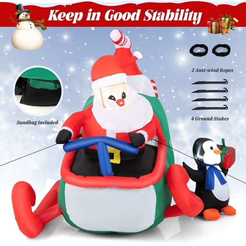 6.2 FT Christmas Inflatable Santa Claus Driving Helicopter &Penguin Holding Gift